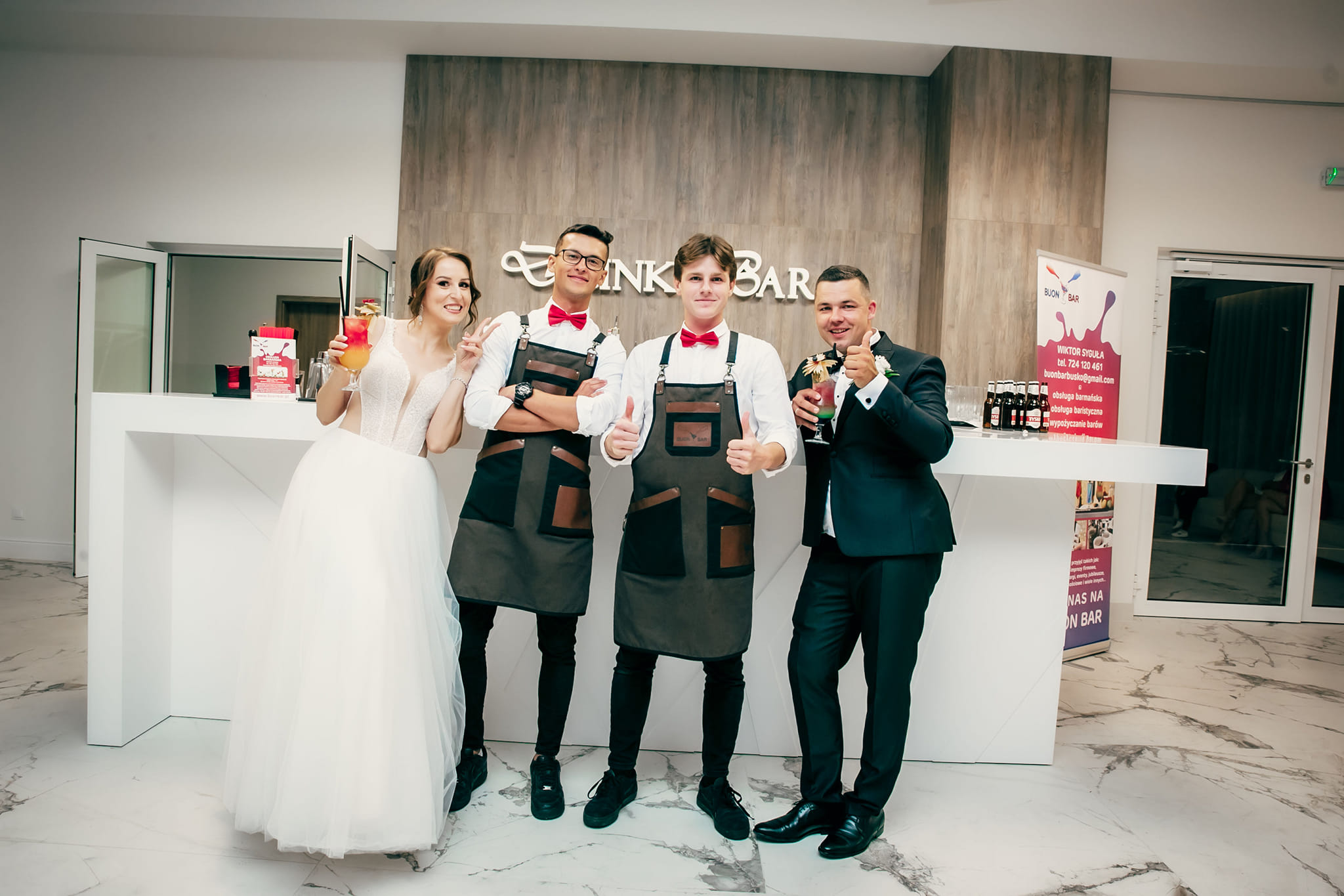 W naszej ofercie mamy obsługę barmańską, wynajem mobilnych barów, obsługę baristyczną z całym sprzętem. Nie zabraknie u nas też fontanny alkoholowej. Moja firma oferuje też fotobudkę i duże podświetlane napisy „Love” i „Miłość”. Współpracujemy też z firmami. Organizujemy też na przykład warsztaty z robienia drinków. Polega to na przygotowaniu około 20 stanowisk, gdzie każdy może spróbować swoich sił jako barman. Dodam, że nie ograniczamy się do konkretnego regionu. Odwiedzamy imprezy na terenie całego kraju. Ostatnio byliśmy na przykład na targach w Monachium.